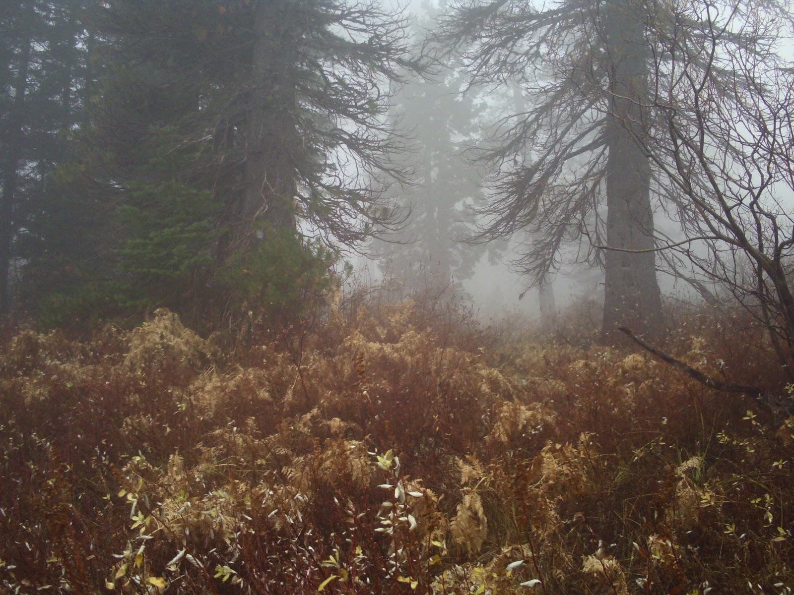 The sound of the wind in the trees was a constant companion throughout my trip. It is such a primal sound. I took more than one break to just stand and listen as the gusts of wind rushed through the forest around me. I don't think I will ever get tired of listening to the wind. The fog/clouds completely changed the landscape. Normally once you start climbing out of the valley the view just keeps expanding and you can see for miles once you reach the ridge line.